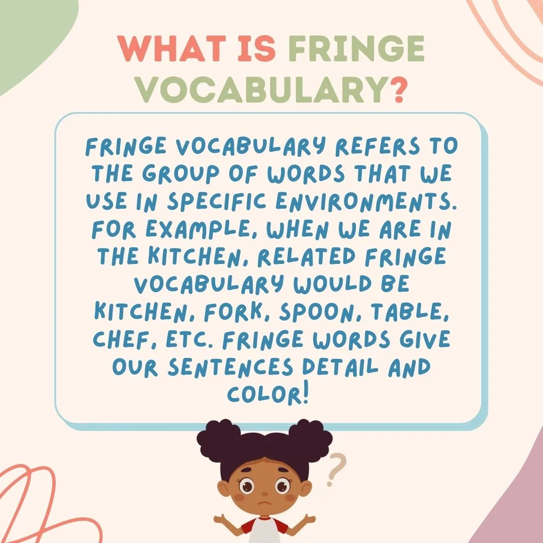 FRINGE vocabulary refers to the other 20% of the words that we use in specific contexts.